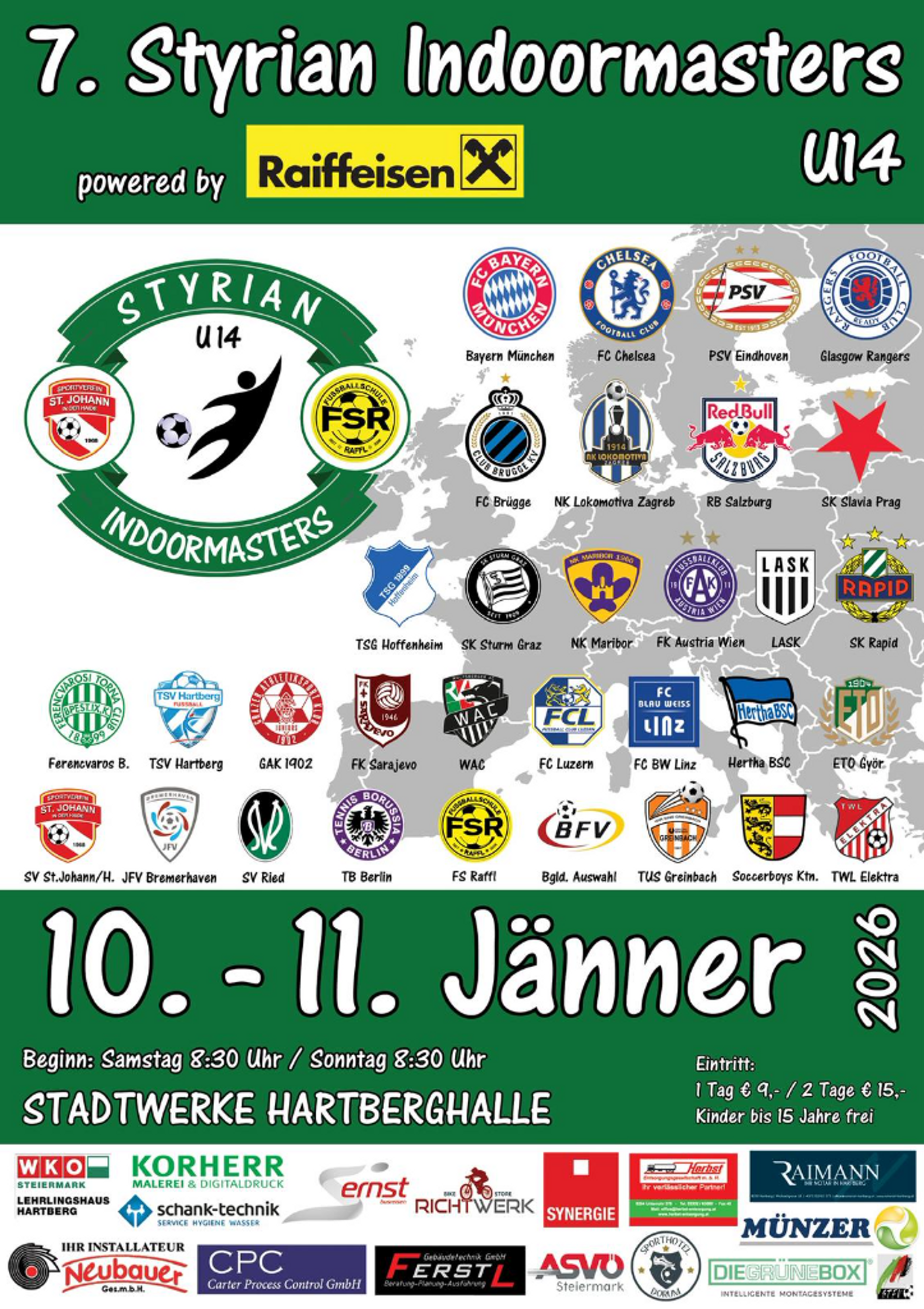 Wieder mit dabei sind wie gewohnt die österreichischen Topteams Sturm, Salzburg oder Rapid. Auch internationale Topteams, wie Titelverteidiger Brügge, Bayern München, Chelsea, Eindhoven oder Hoffenheim werden im Jänner beim Hauptturnier an den Start gehen. Beim Qualifikationsturnier Ende Dezember haben die Vereine die Möglichkeit einen der begehrten Restplätze für das große Spektakel zu ergattern. Und auf fan.at könnt ihr live mit dabei sein, falls ihr es nicht an beiden Tagen in die Halle schafft.